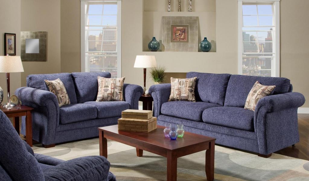 Wallpaper Blue sofas in the living room