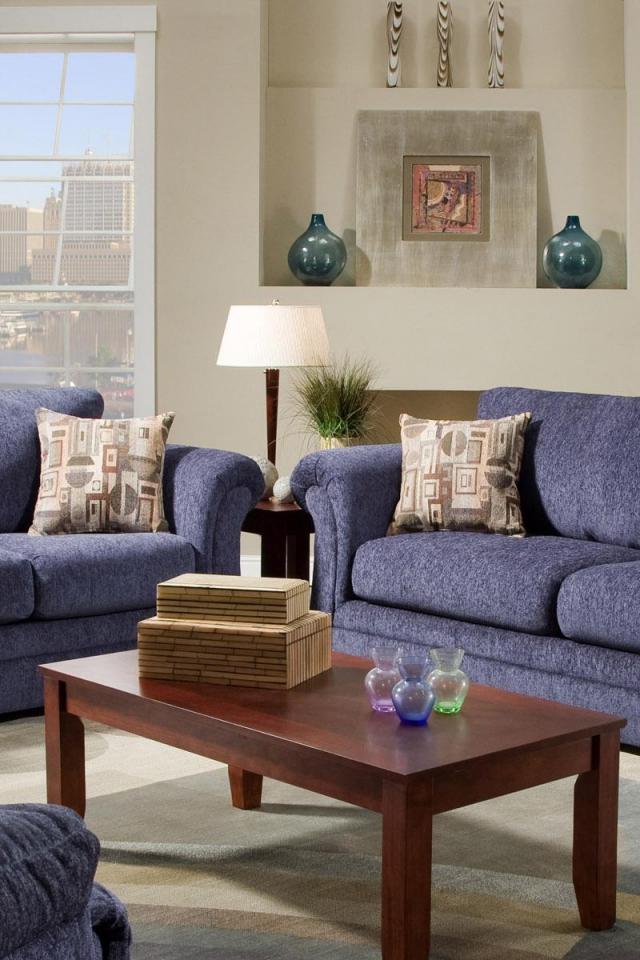 Wallpaper Blue sofas in the living room