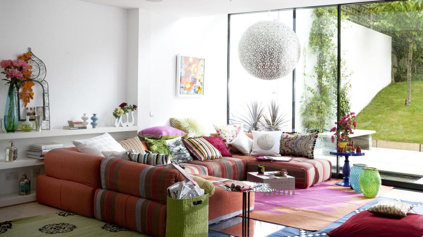 Wallpaper Colorful pillows in the living room