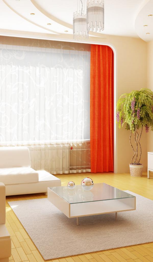 Wallpaper Orange curtains in the living room