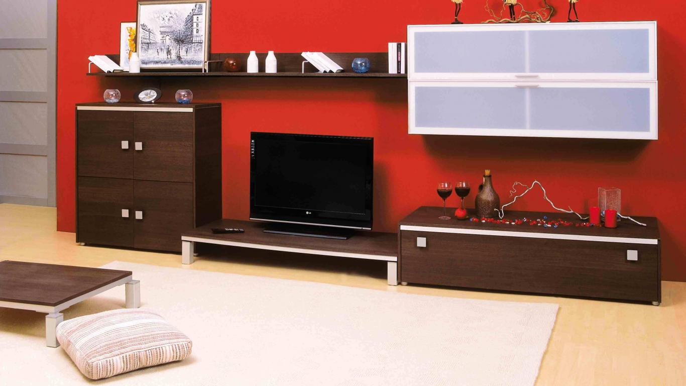 » Wallpaper Red wall in the living room
