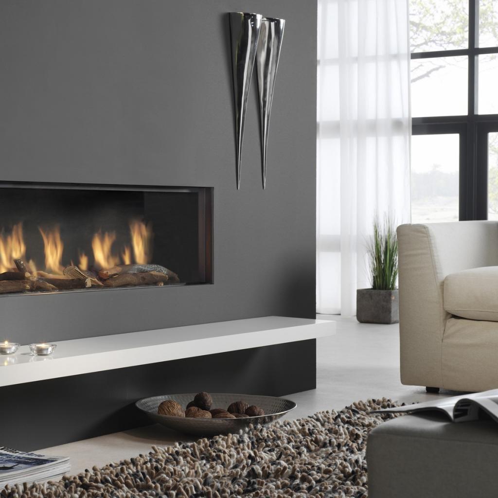 » Wallpaper Burning fireplace in living room