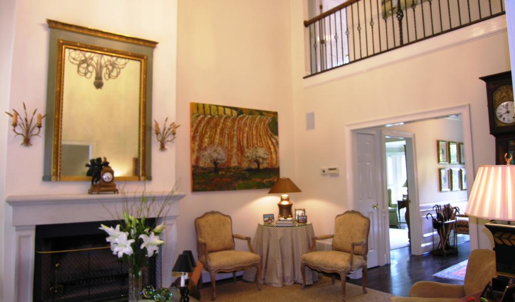 Wallpaper The mirror above the fireplace in the living room