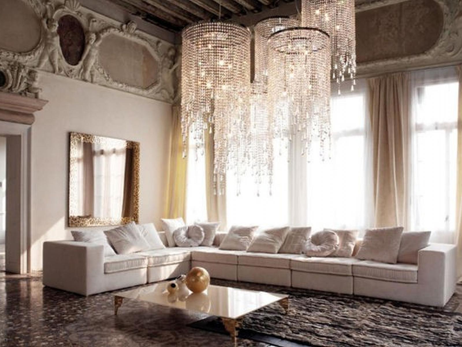 Wallpaper A large chandelier in the living room