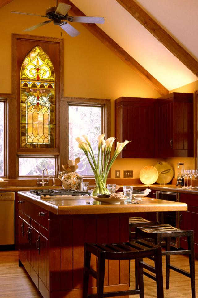 Wallpaper Kitchen with a stained-glass window