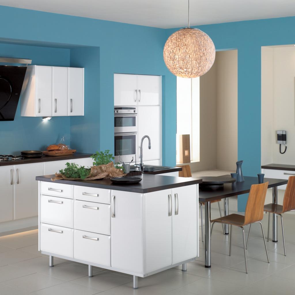 » Wallpaper Spacious kitcen blue