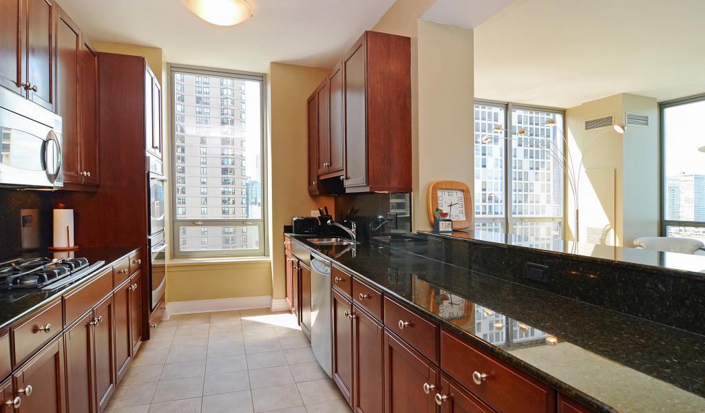 » Wallpaper Long brown kitchen