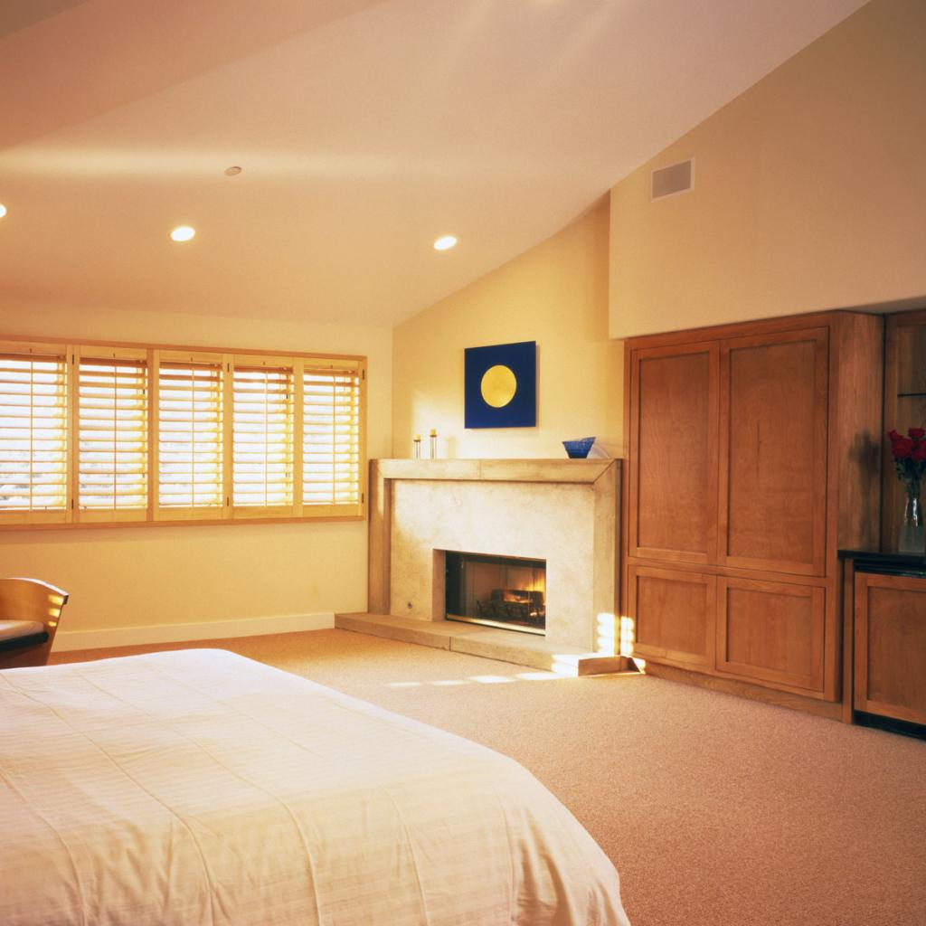 » Wallpaper Spacious bedroom with a fireplace