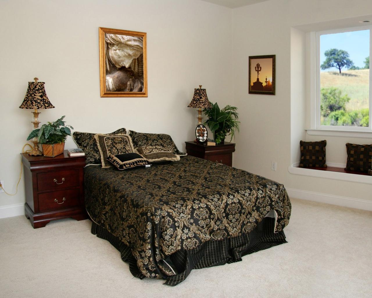 Wallpaper Black bedspread on the bed in the bedroom