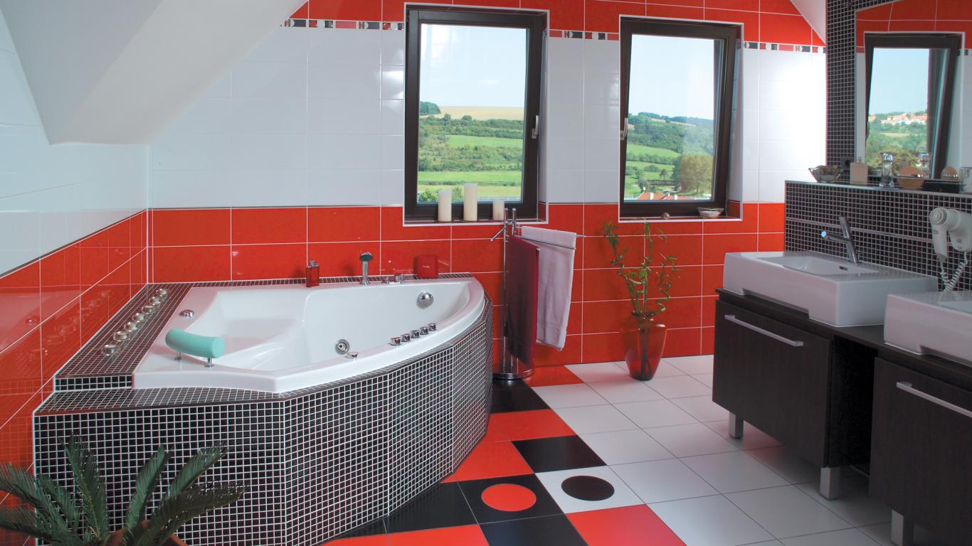 » Wallpaper The red tiles in the bathroom