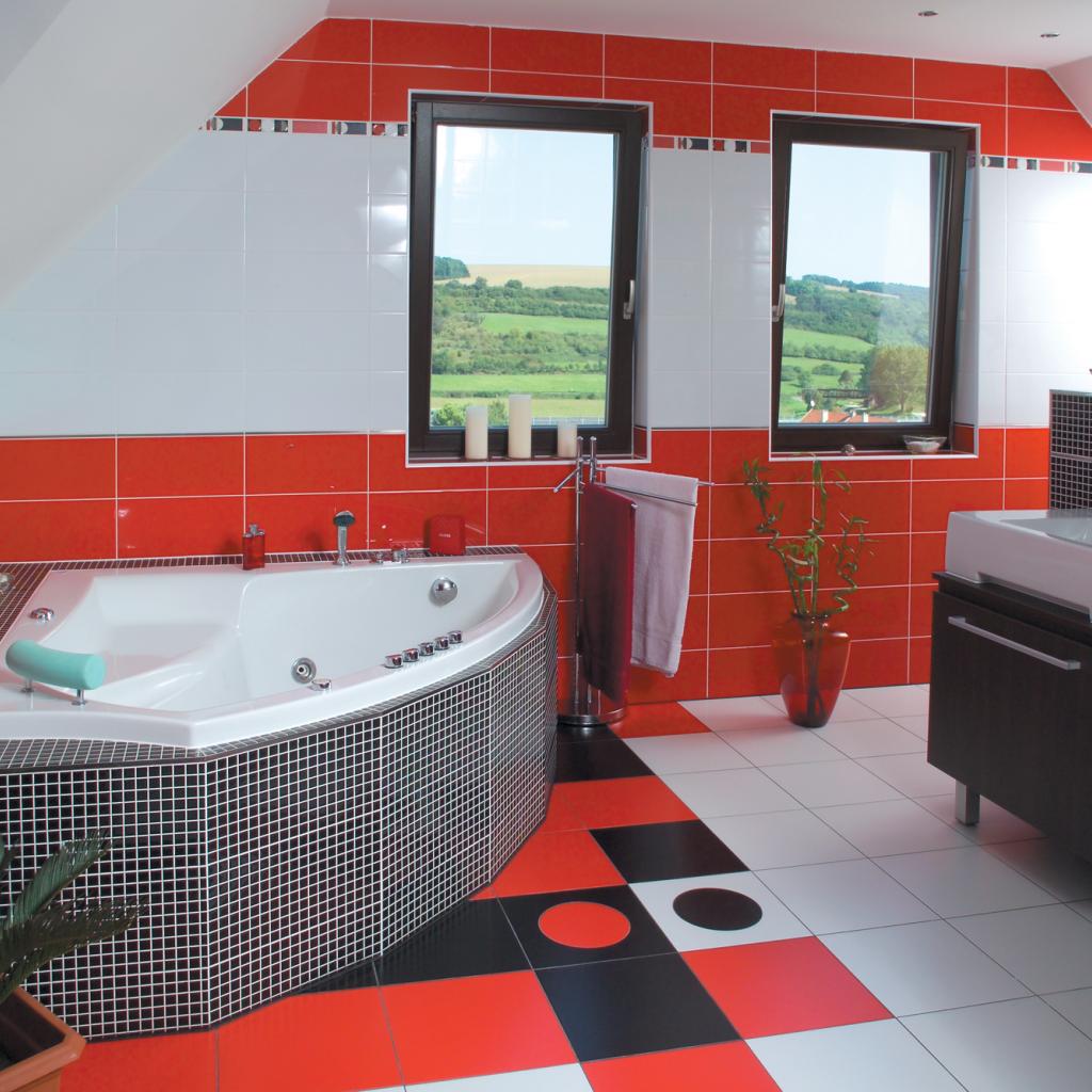 » Wallpaper The red tiles in the bathroom