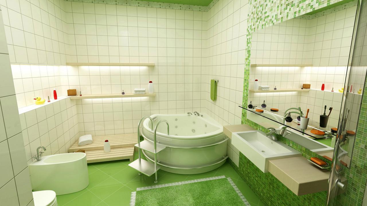 Wallpaper Bathroom in green style