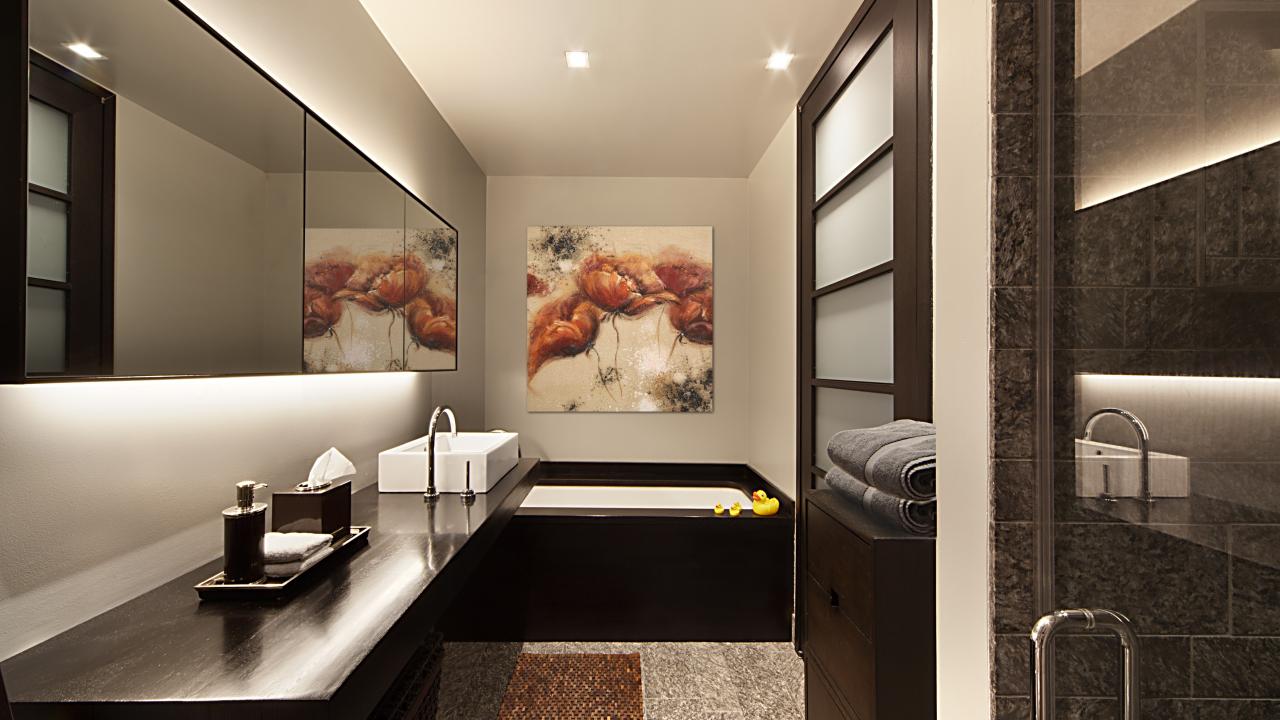 » Wallpaper Dark brown bathroom design