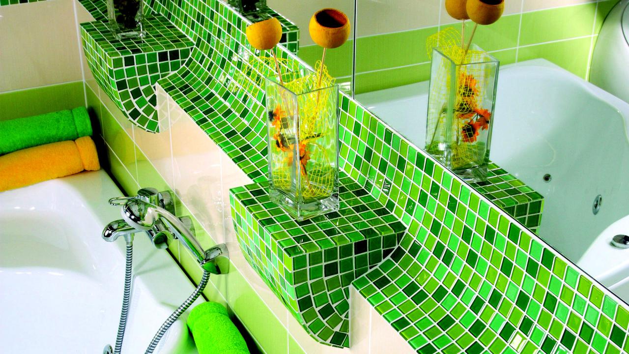 Wallpaper Green tiles in the bathroom