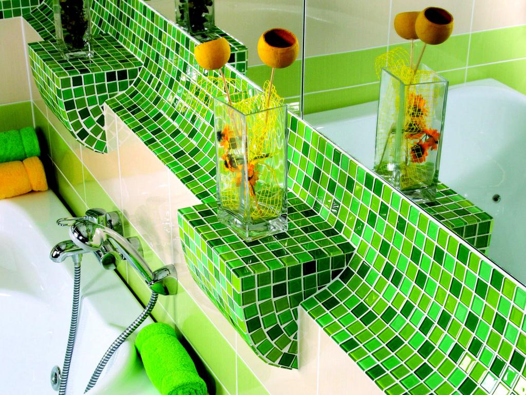 Wallpaper Green tiles in the bathroom