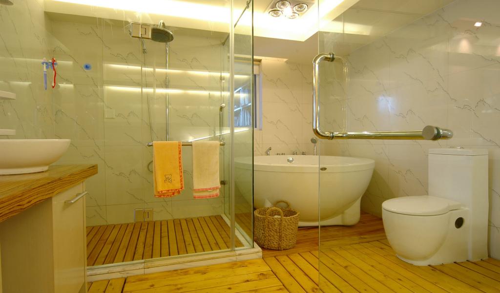 Wallpaper Wood flooring in the bathroom