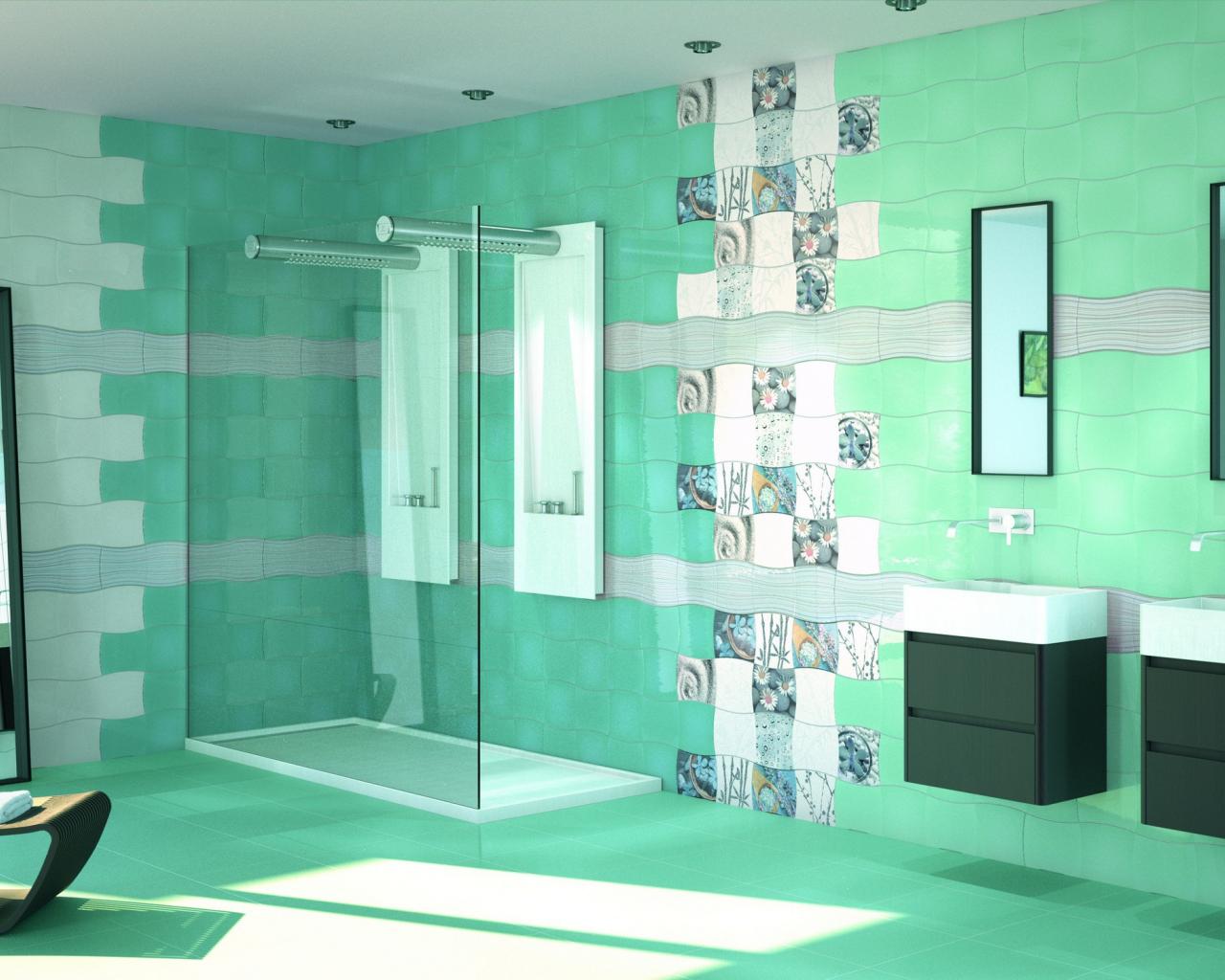 Wallpaper Green tiles in the bathroom
