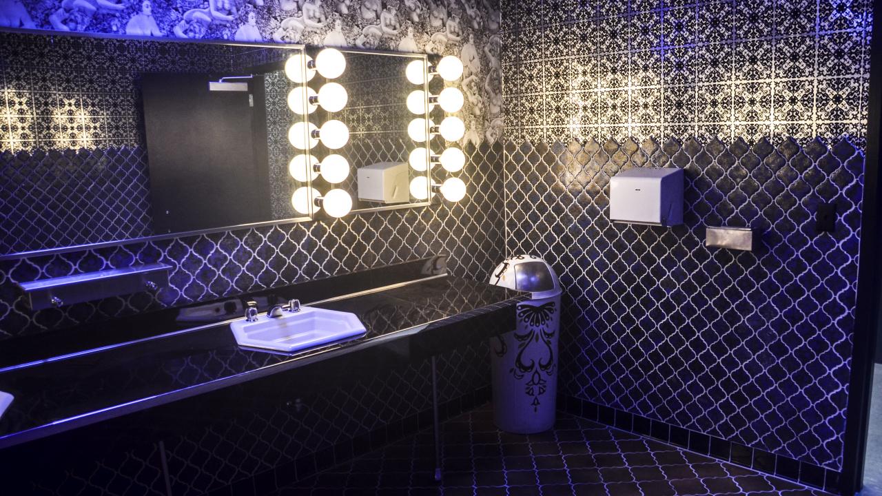 Wallpaper Blue black tiles in the bathroom