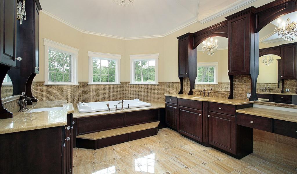 Wallpaper A spacious bathroom in brown tones