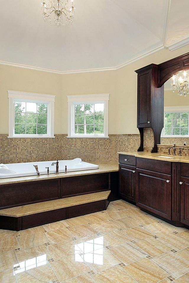 Wallpaper A spacious bathroom in brown tones