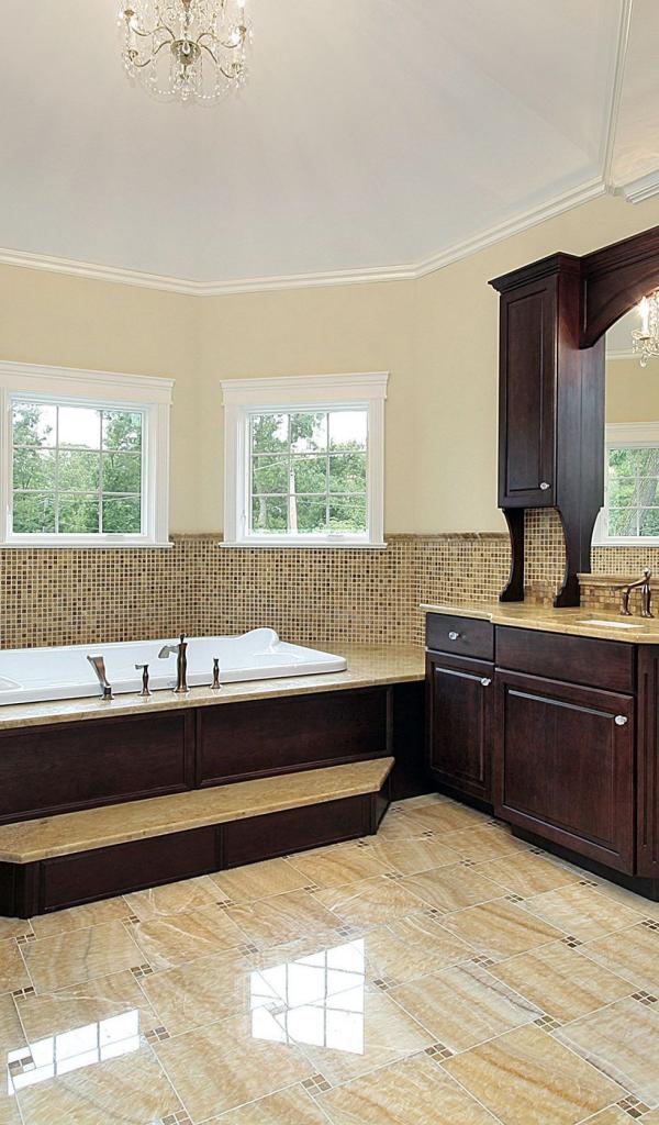 Wallpaper A spacious bathroom in brown tones