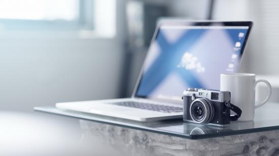 Wallpaper Modern laptop and retro camera