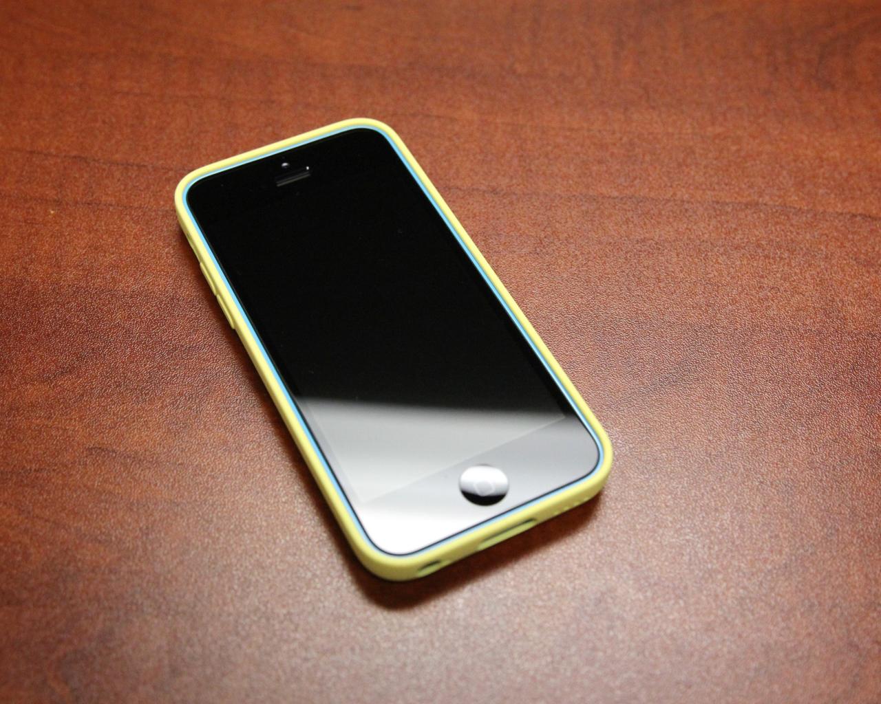 Wallpaper Blue Iphone 5C in yellow corporate cover from Apple