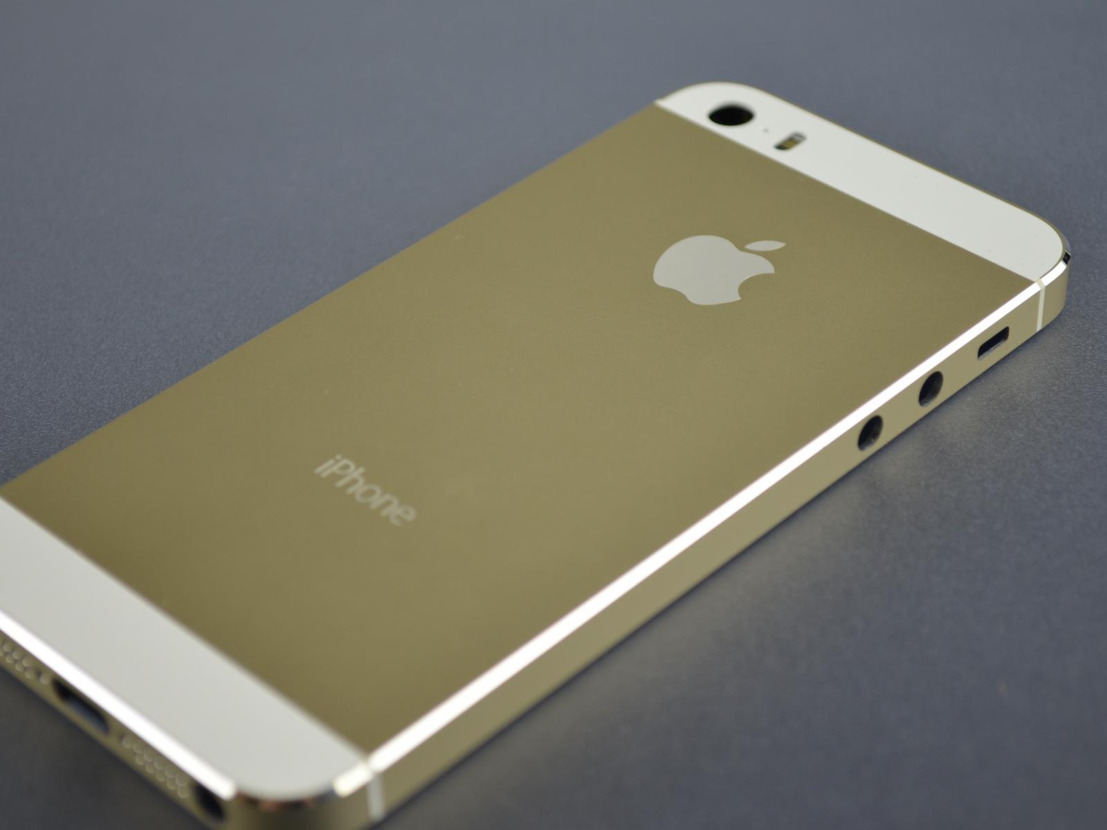 Wallpaper New Iphone 5S champagne color on a gray table