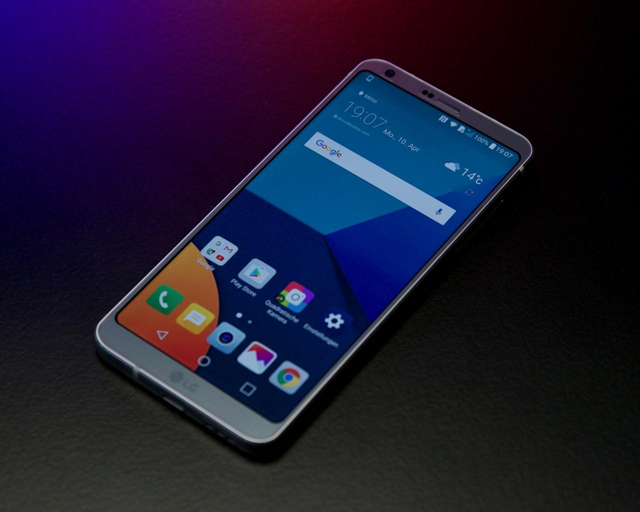 Wallpaper Thin smartphone LG G6 Mini on a black background