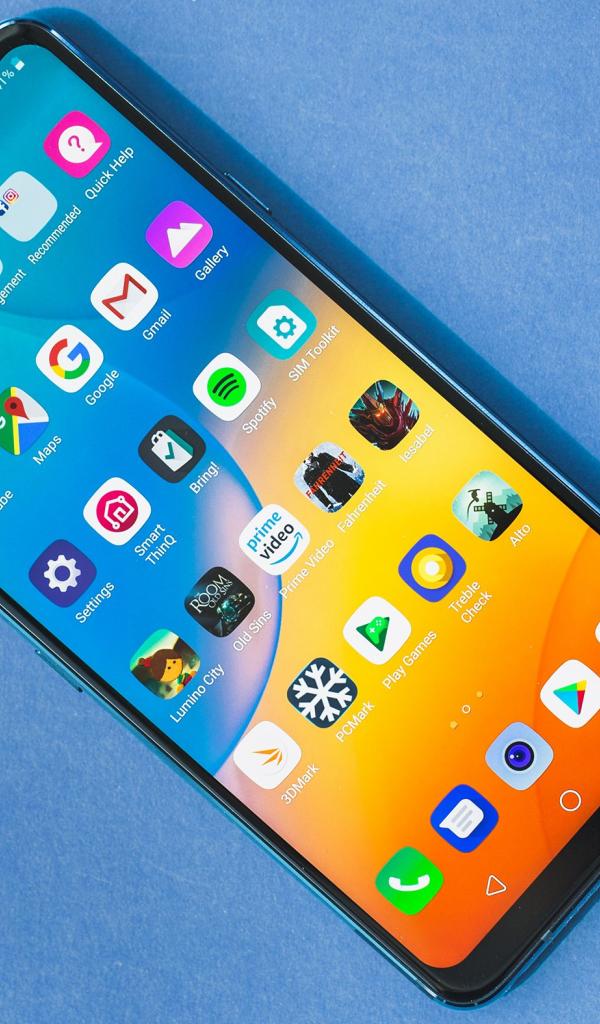 Wallpaper Smartphone LG G7 ThinQ on a blue background
