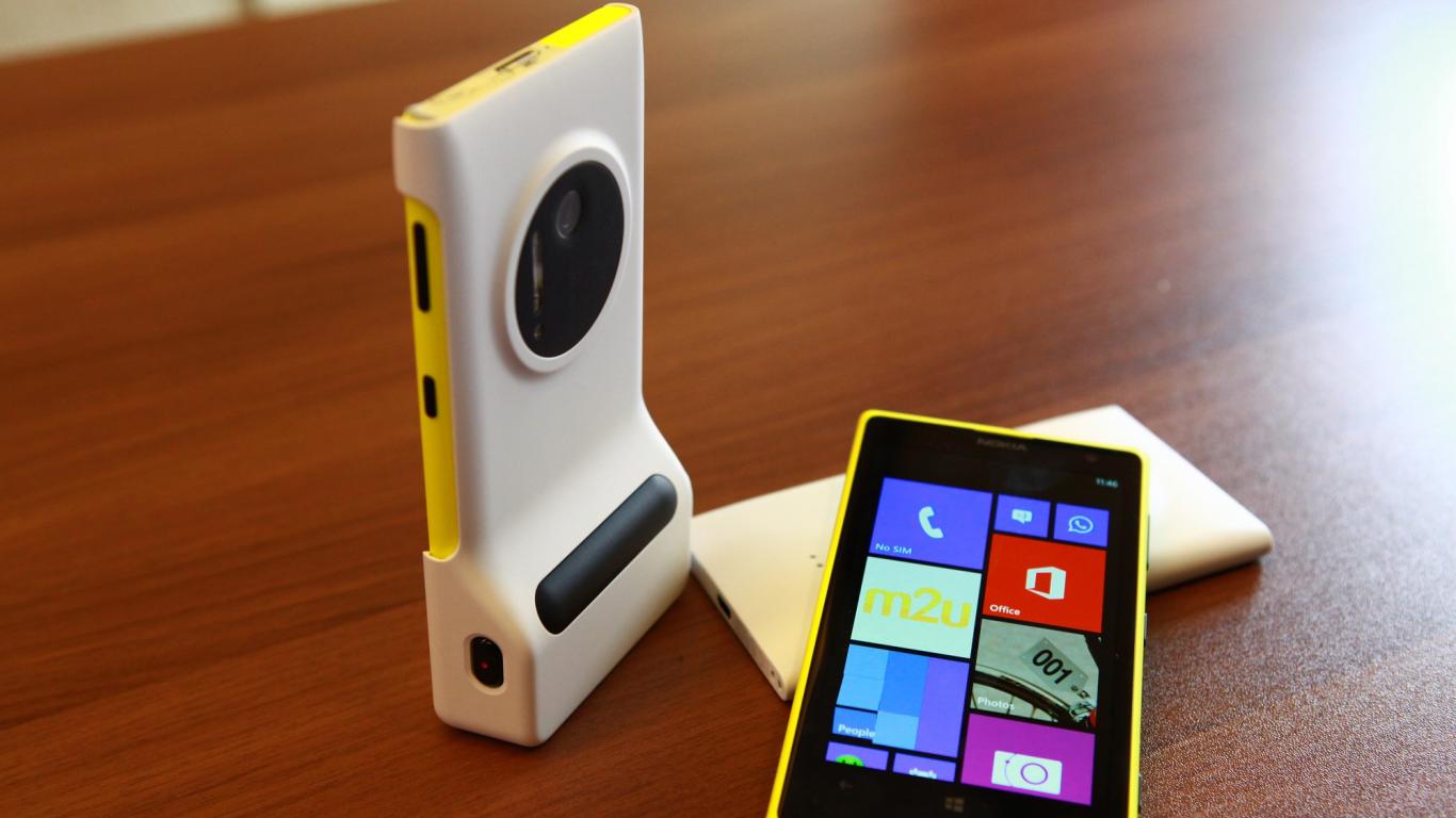 Wallpaper Nokia Lumia 1020 and panel-attachment Nokia Camera Grip
