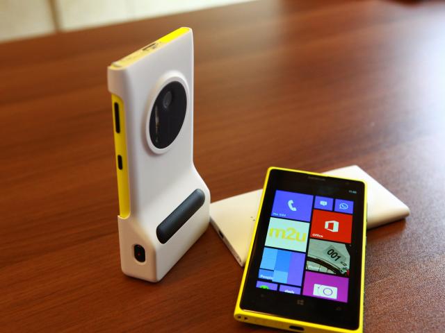 Wallpaper Nokia Lumia 1020 and panel-attachment Nokia Camera Grip