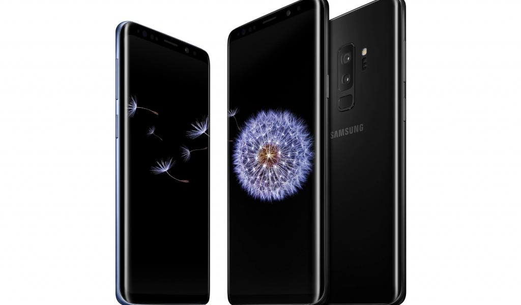 Wallpaper Black Samsung Galaxy S9 smartphone on a white background