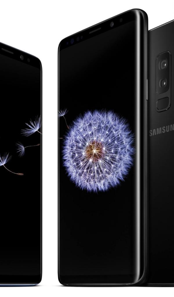 Wallpaper Black Samsung Galaxy S9 smartphone on a white background