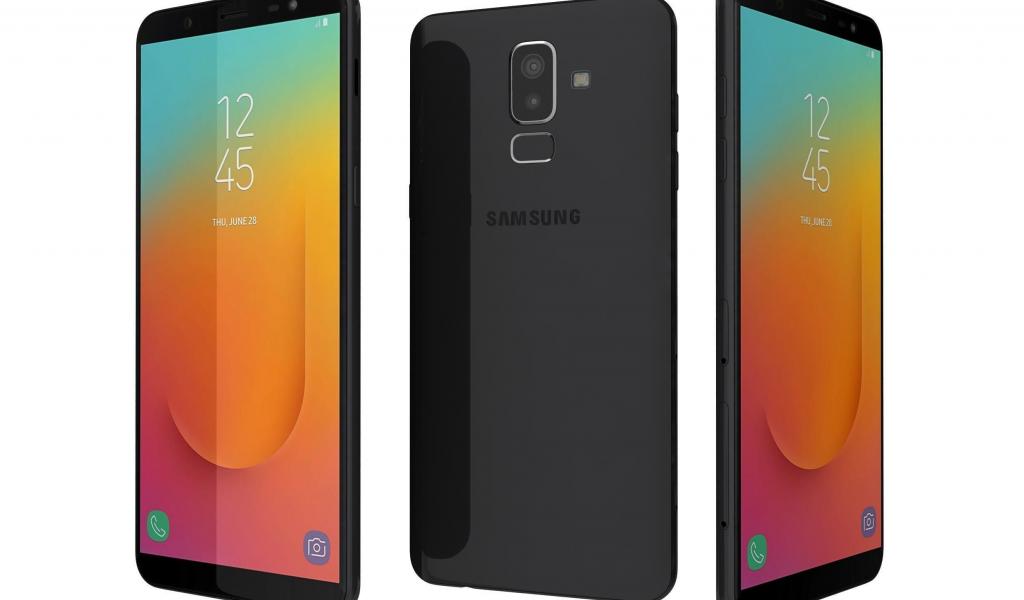 Wallpaper Black Samsung Galaxy J8 smartphone on a white background