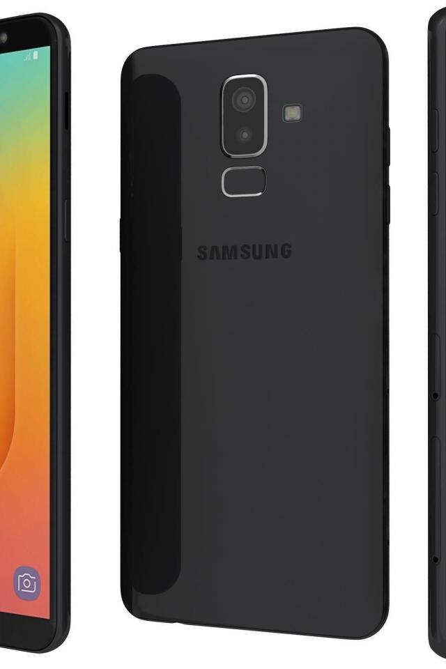 Wallpaper Black Samsung Galaxy J8 smartphone on a white background