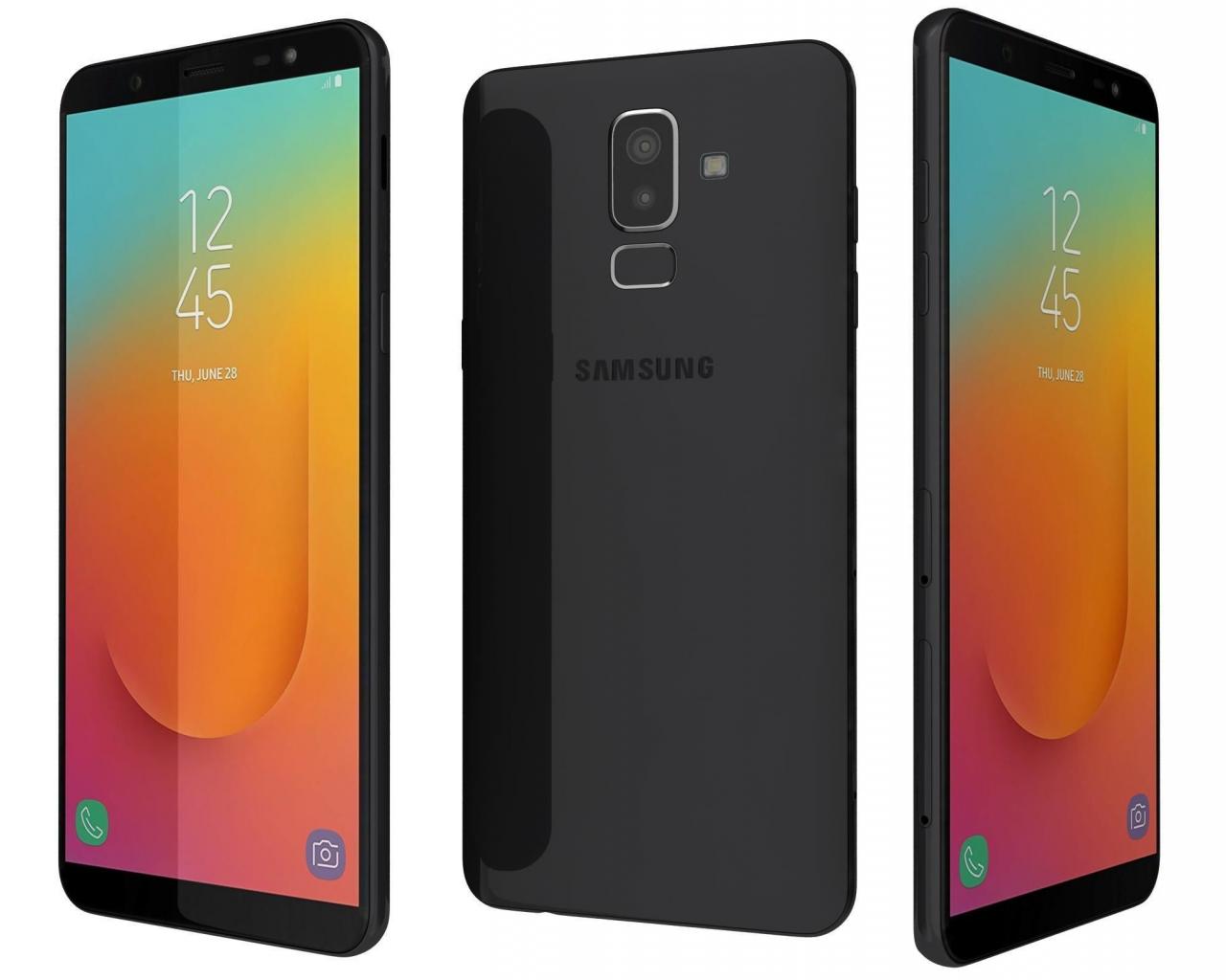 Wallpaper Black Samsung Galaxy J8 smartphone on a white background