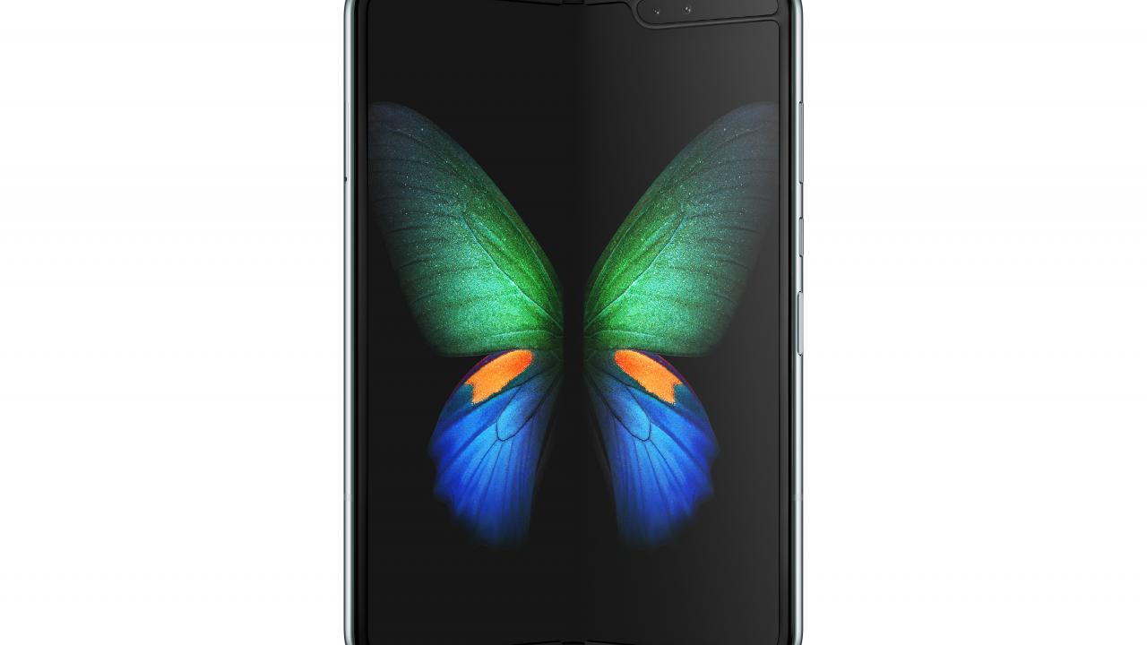 Wallpaper Bending smartphone Samsung Galaxy Fold 2019 on white background