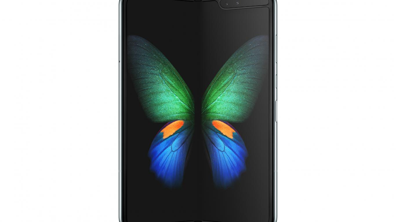 Wallpaper Bending smartphone Samsung Galaxy Fold 2019 on white background