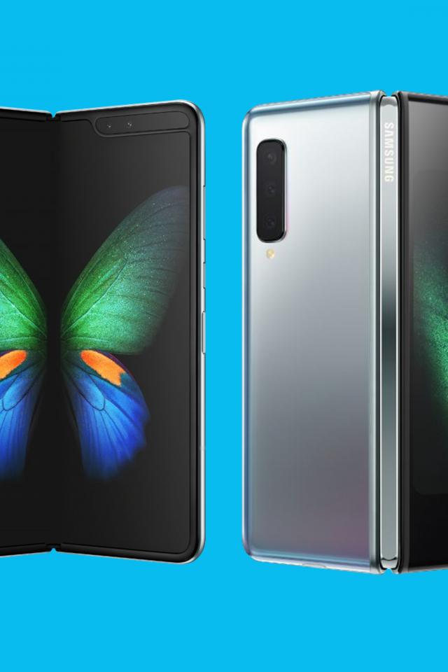 Wallpaper Bending smartphone Samsung Galaxy Fold with a butterfly