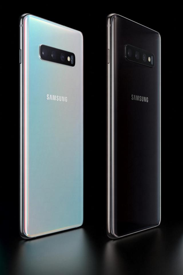 Wallpaper Samsung Galaxy S10 smartphones on a black background