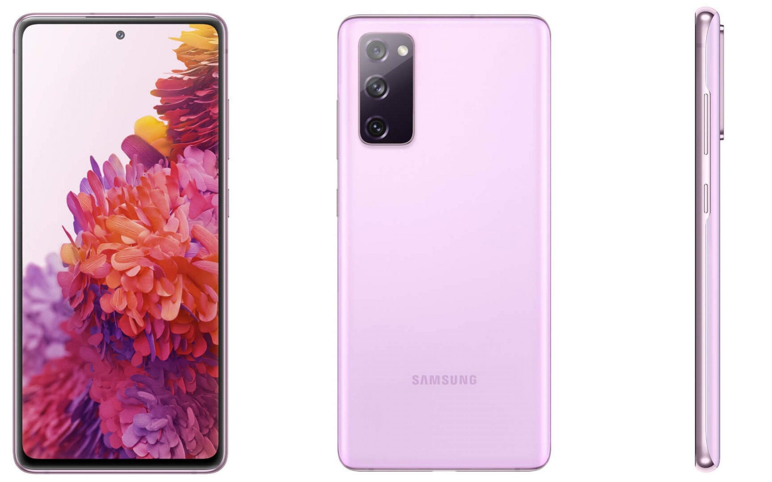 Wallpaper New pink smartphone Samsung Galaxy S20FE on a white background