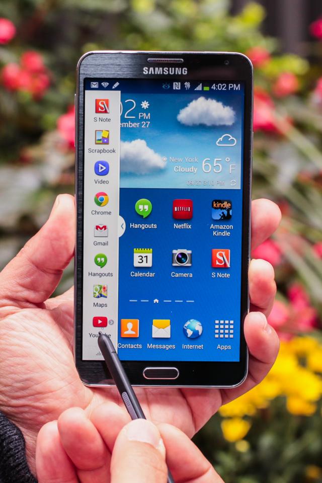 Wallpaper Samsung Galaxy Note 3 and S Pen on the a background of flowers