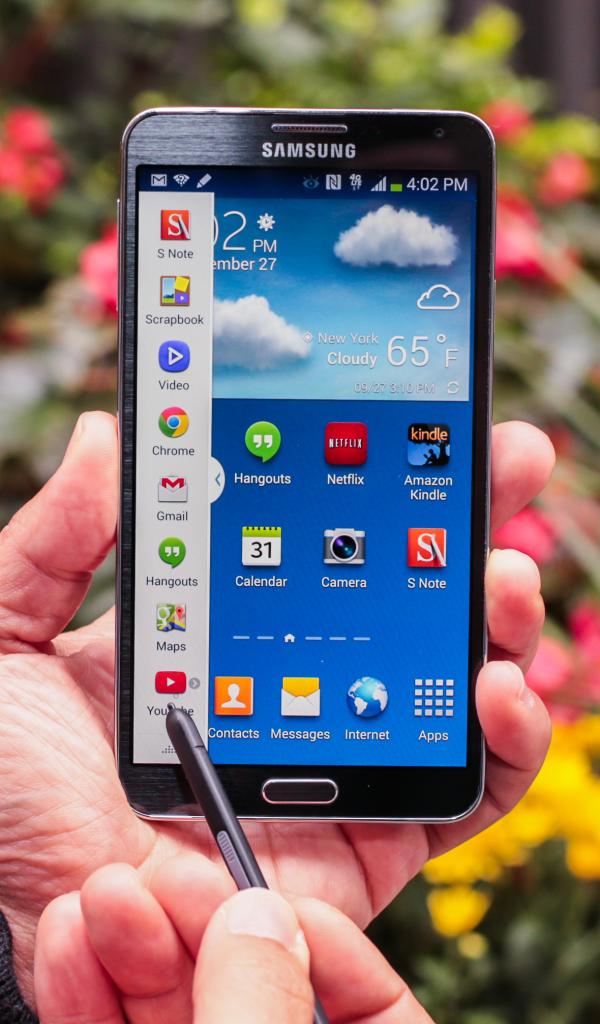 Wallpaper Samsung Galaxy Note 3 and S Pen on the a background of flowers