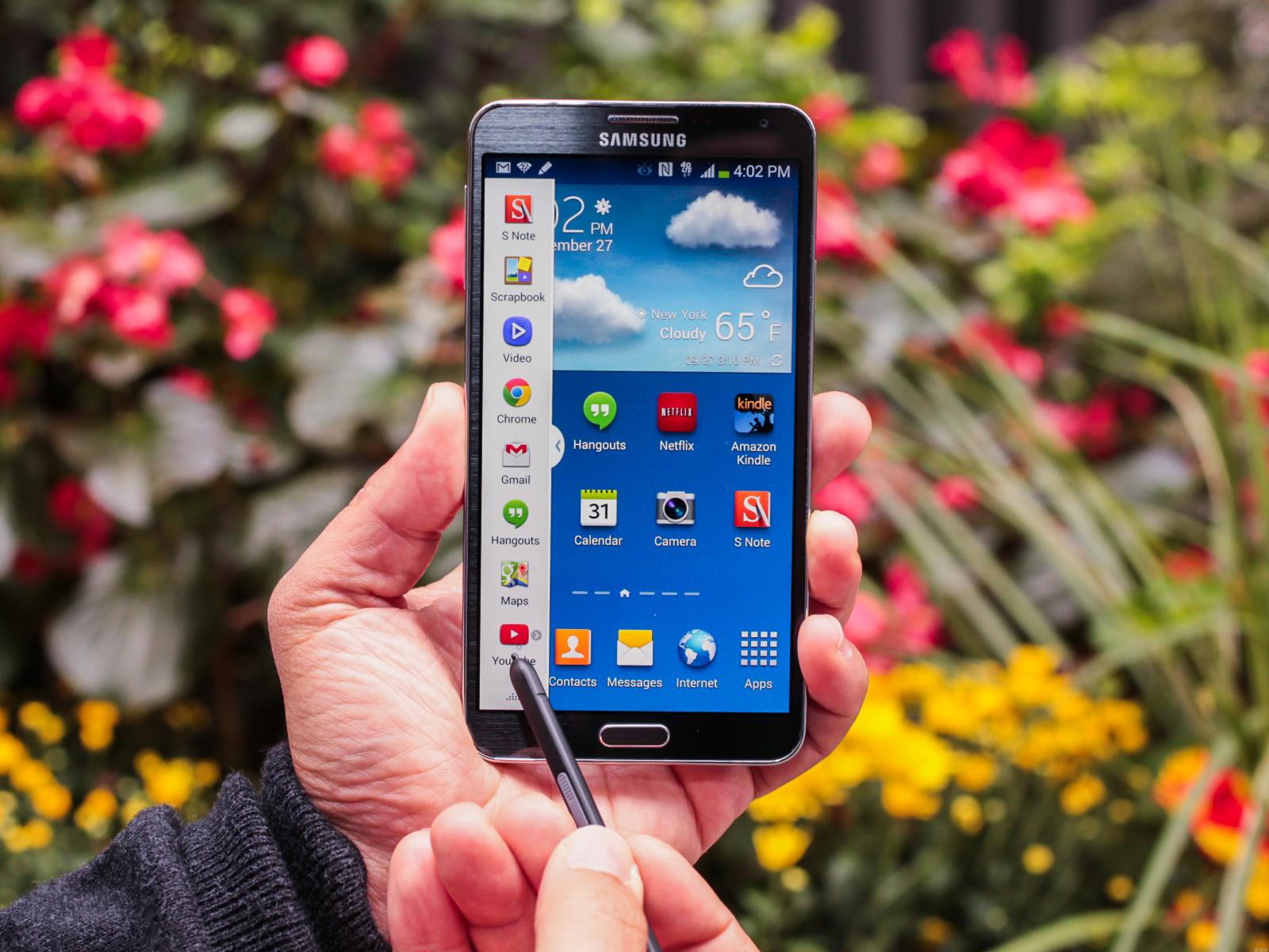 Wallpaper Samsung Galaxy Note 3 and S Pen on the a background of flowers