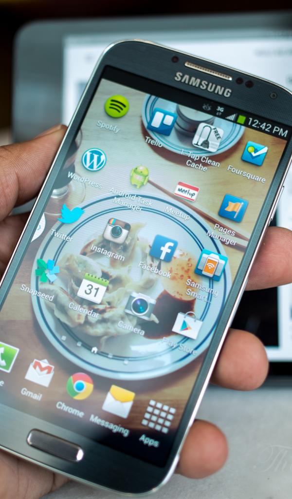 Wallpaper New Samsung Galaxy S4 on the background of tablet