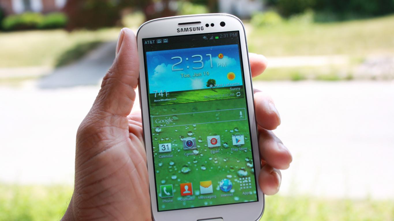 Wallpaper Samsung Galaxy S3 in hand on a white background