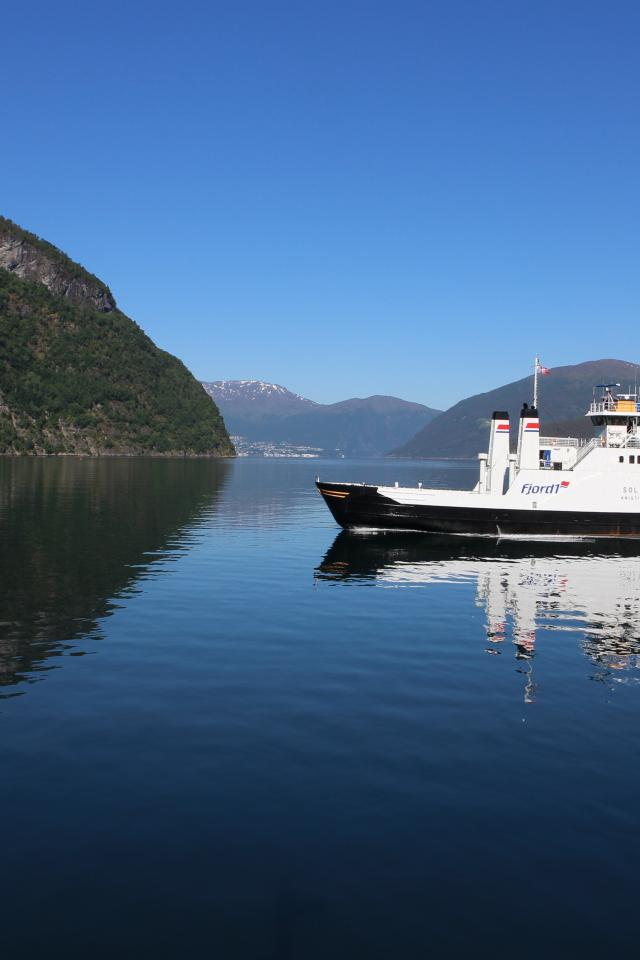 Wallpaper Boat at the pier of a mountain lake in Norway