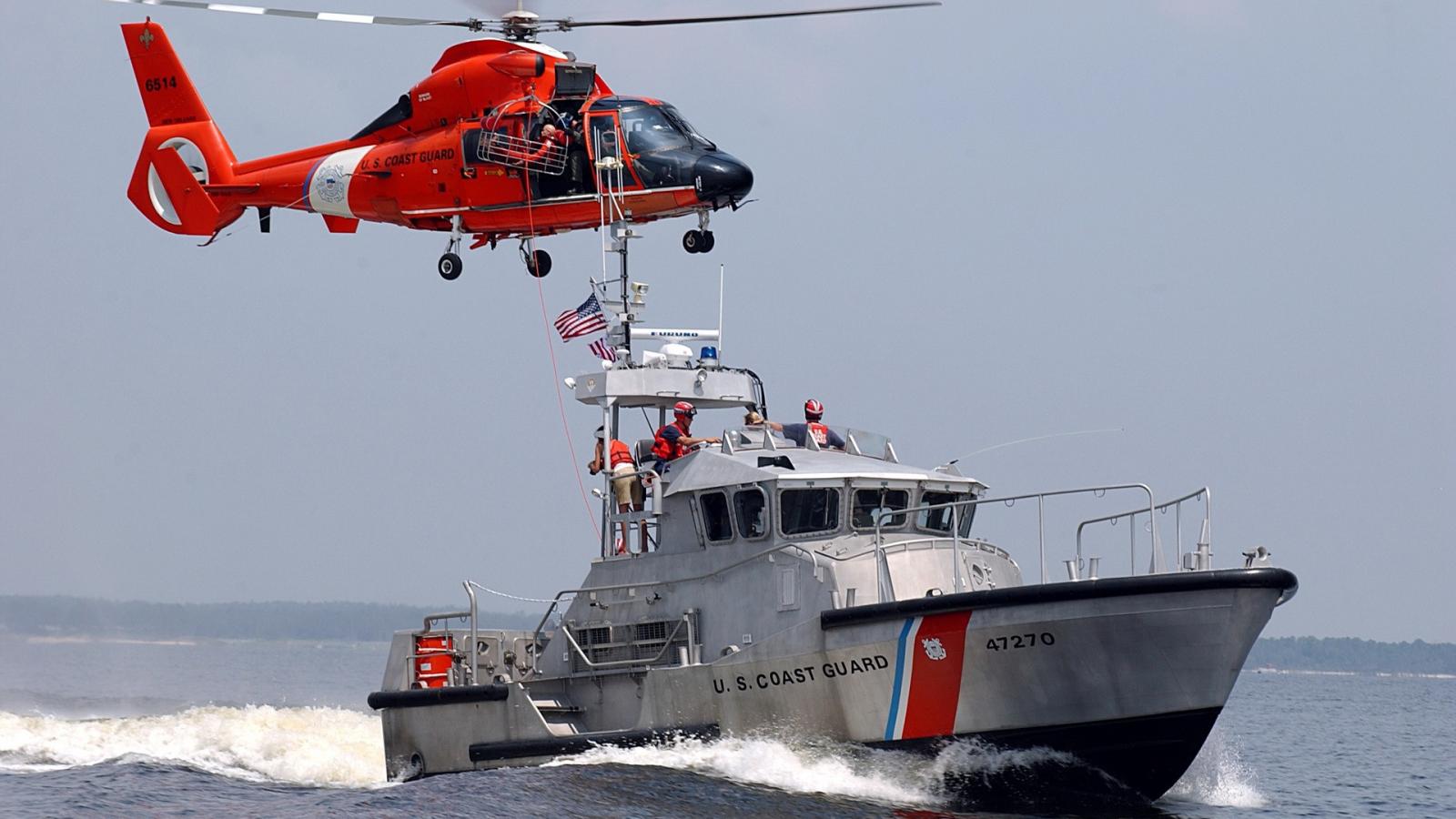 Wallpaper Helicopter and boat USCG