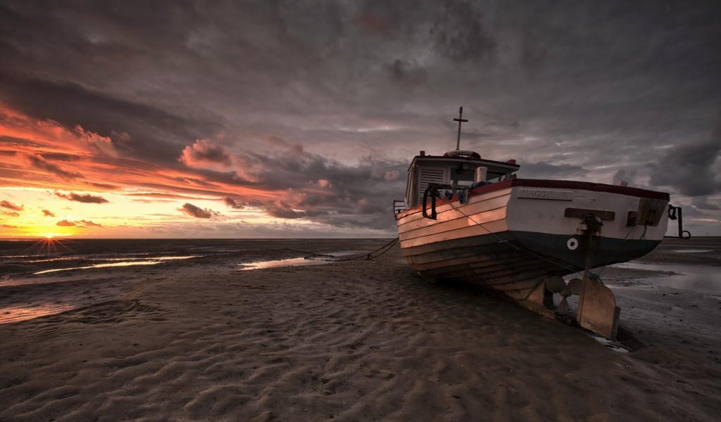 Wallpaper Boat on the beach sand at low tide